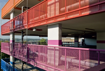 Components in multi-storey car parks with insufficient, corroded or damaged reinforcement can now be easily and inexpensively upgraded with carbon fiber-reinforced plastics (CFRP). Flexural strength is enhanced through the use of slot-moulded or surface-bonded CFRP lamellas, while columns or pillars of low-quality concrete can be completely bandaged with CF sheets to augment their multi-axial strength, increasing their load-bearing capacity to up to twice the original value.