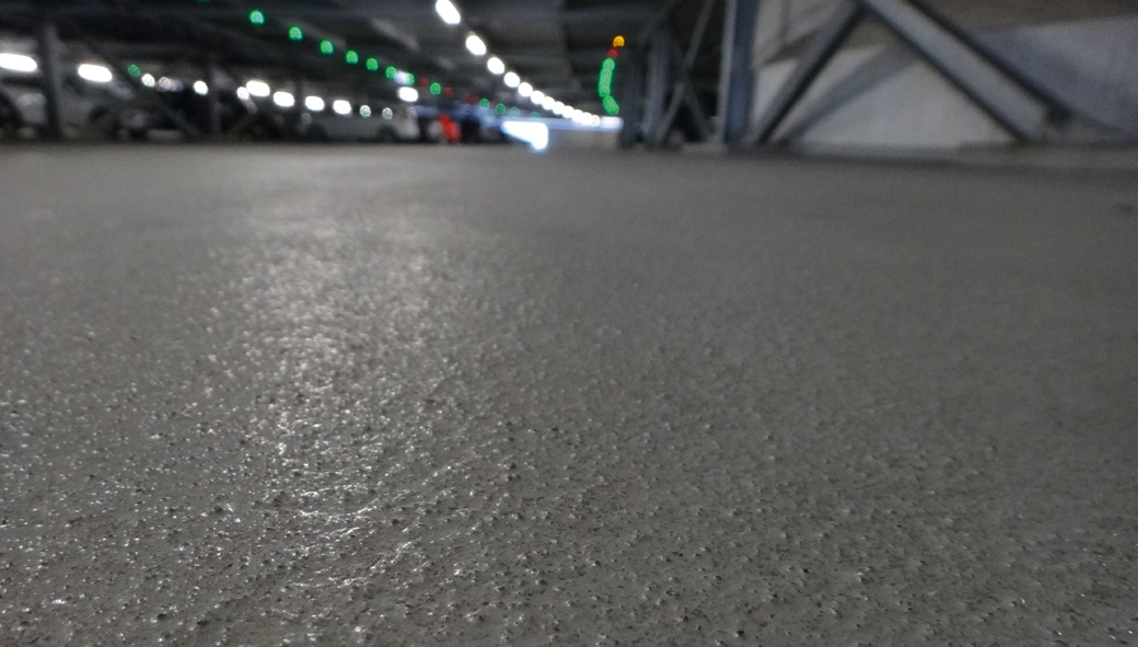 For the surface protection of open parking decks, regulations recommend an OS 11 system. By definition, these systems involve coatings for areas subject to traffic with, as a minimum, increased dynamic crack bridging of 0.3 mm. Experience has shown, however, that the first signs of wear and tear can be observed after a short period of service, especially in areas subject to high mechanical stress such as curves, ramps or helixes. The rigid OS 8 system MC-DUR 1252 is therefore better suited and is applicable to almost all areas of the car park. The high wear resistance of this system has not just been proven in trafficability tests but firmly established under practical service conditions. The impermeability of MC-DUR 1252 also ensures durable protection of the reinforced concrete structure against chlorides.