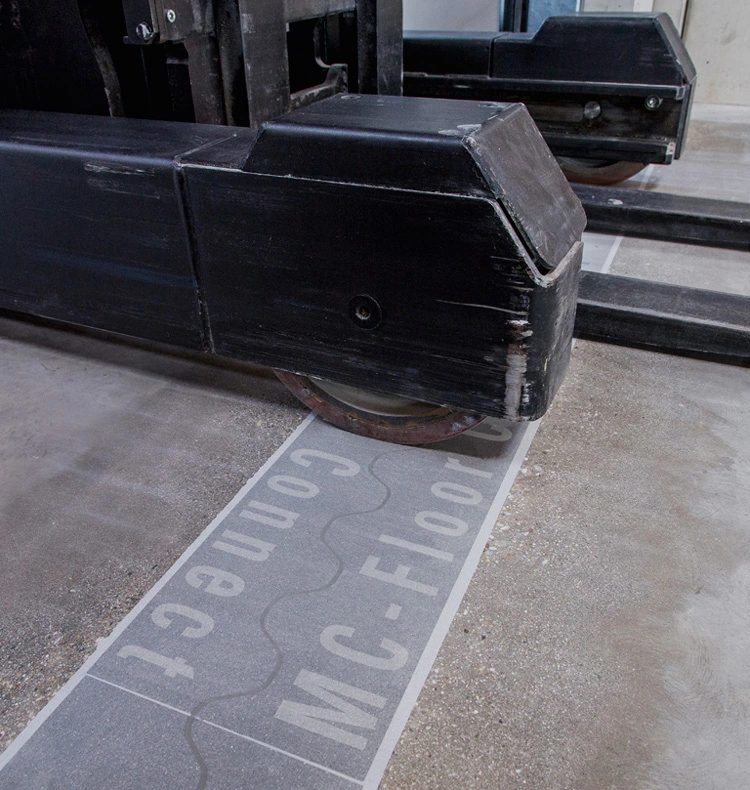 Conventional floor joint profiles of steel are deployed to resist high wheel loads on concrete floors – as encountered, for example, in car parks, production and storage buildings and in retail facilities. You cannot see them, but you frequently hear them as contact from wheeled traffic invariably gives rise to noise and vibration. Industrial trucks such as forklifts often shake as they pass over such joints, increasing noise levels and even sometimes causing damage to fragile goods on board. Sooner or later, the forklifts and the floor itself experience attrition, with operative health also a concern. With MC-Floor Connect MC-Bauchemie offers fast, easy-fit prefabricated polymer concrete profiles. They create a smooth floor surface, ensuring that wheeled equipment can pass over virtually vibration- and noise-free.